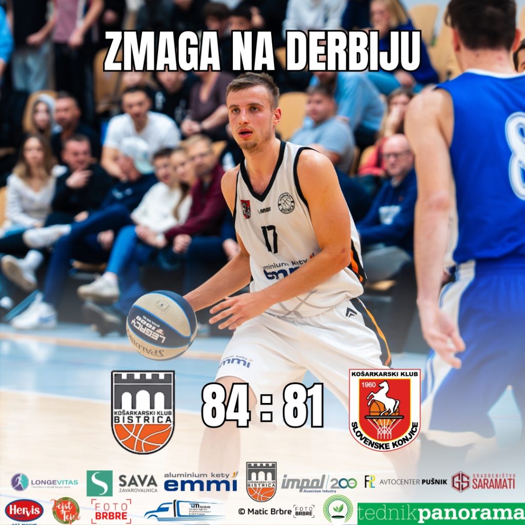 Članska ekipa, NoviceKK Bistrica Kety Emmi je v domačem derbiju 15. kola 3. SKL – vzhod pred okoli 200 gledalci z rezultatom 84 : 81 premagala vodilno ekipo KK Slovenske Konjice. Bistričani so skozi celotno srečanje igrali zrelo in zbrano, v odločilnih trenutkih pa je odgovornost prevzel kapetan Jaka Pešak, ki je dosegel 30 točk. Pomemben prispevek sta dodala tudi Žiga Gajster in Aljaž Toplišek. Domačo ekipo je odlično vodil trener Uroš Drevenšek, navijači pa so s svojim glasnim navijanjem ustvarili pravo derbi vzdušje. Naslednja tekma Bistričane čaka v Vojniku.